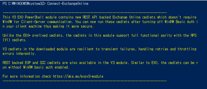 - cmdl: Connect-ExchangeOnline