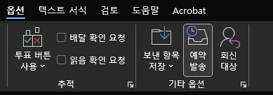 4. 아웃룩 예약발송 설정이 완료 되면 아래와 같이 예약 발송이 클릭되어 있는 것처럼 선택됩니다.