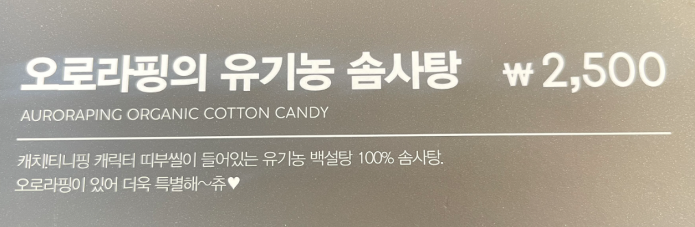 솜사탕 가격 치고 합리적인 가격인듯 합니다.