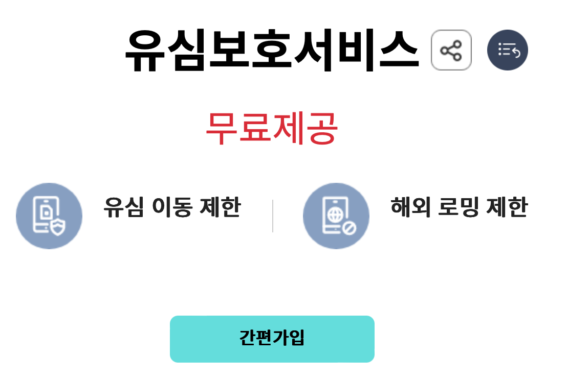 | LG U+ | 유심보호서비스 | 유심 이동 제한, 해외 로밍 제한 | 무료 | LG U+ 고객센터(114) |