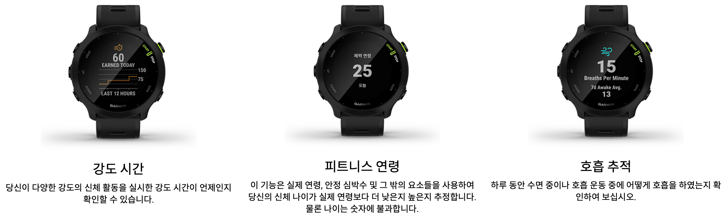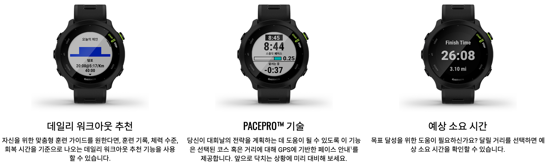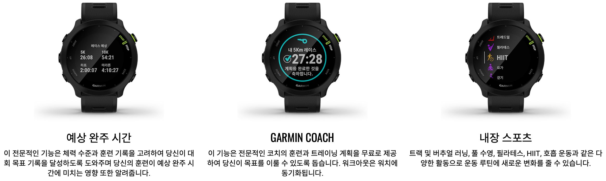 | 모델 | 가민 포러너 55 | 가민 포러너 245 | 가민 포러너 945 |