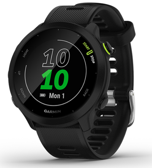 가민 포러너 55 는 정확한 GPS와 심박수 측정으로 운동 성과를 추적할 수 있습니다.