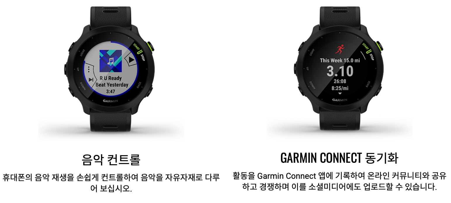 가민 포러너55는 운동 추적과 건강 관리 기능에 최적화된 스마트워치로,