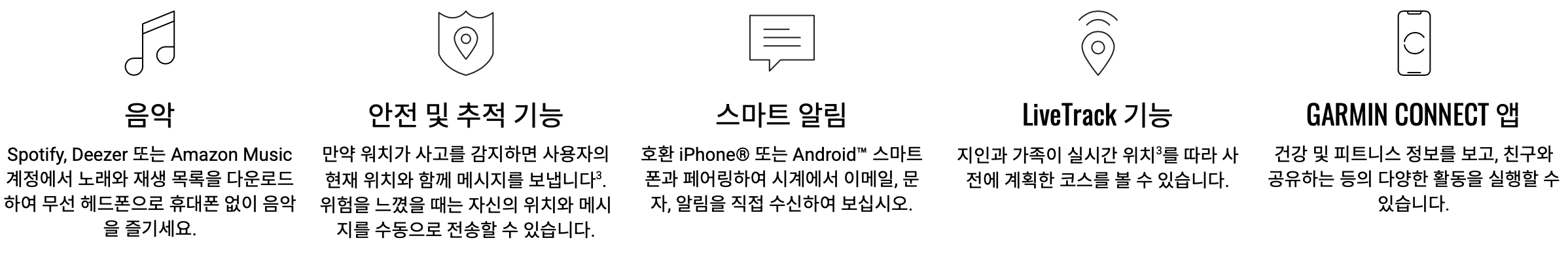 - Garmin Pay: 비접촉식 결제 (해외 일부 국가만)
