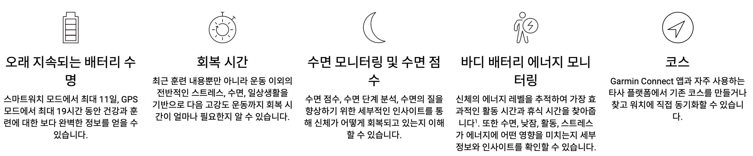 | 배터리 | 스마트워치 11일 / GPS 19시간 | 동일 |
