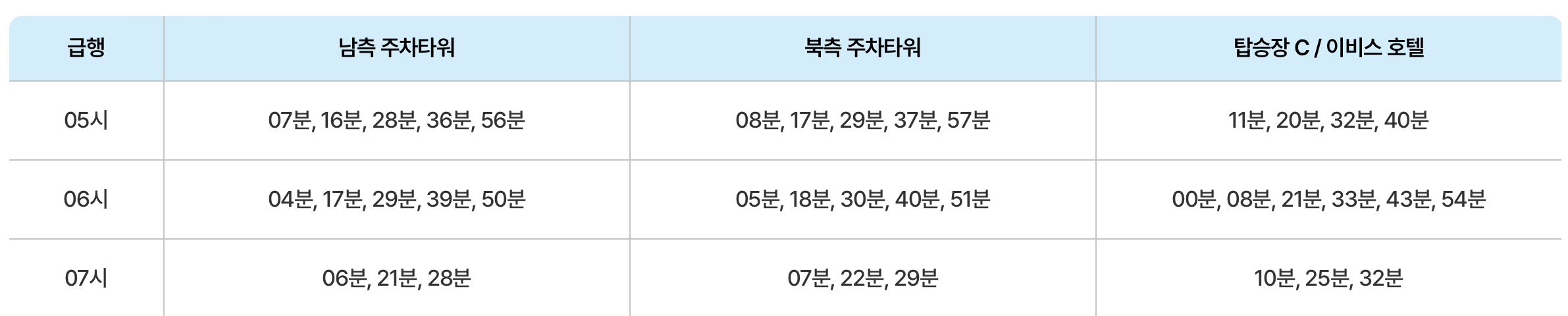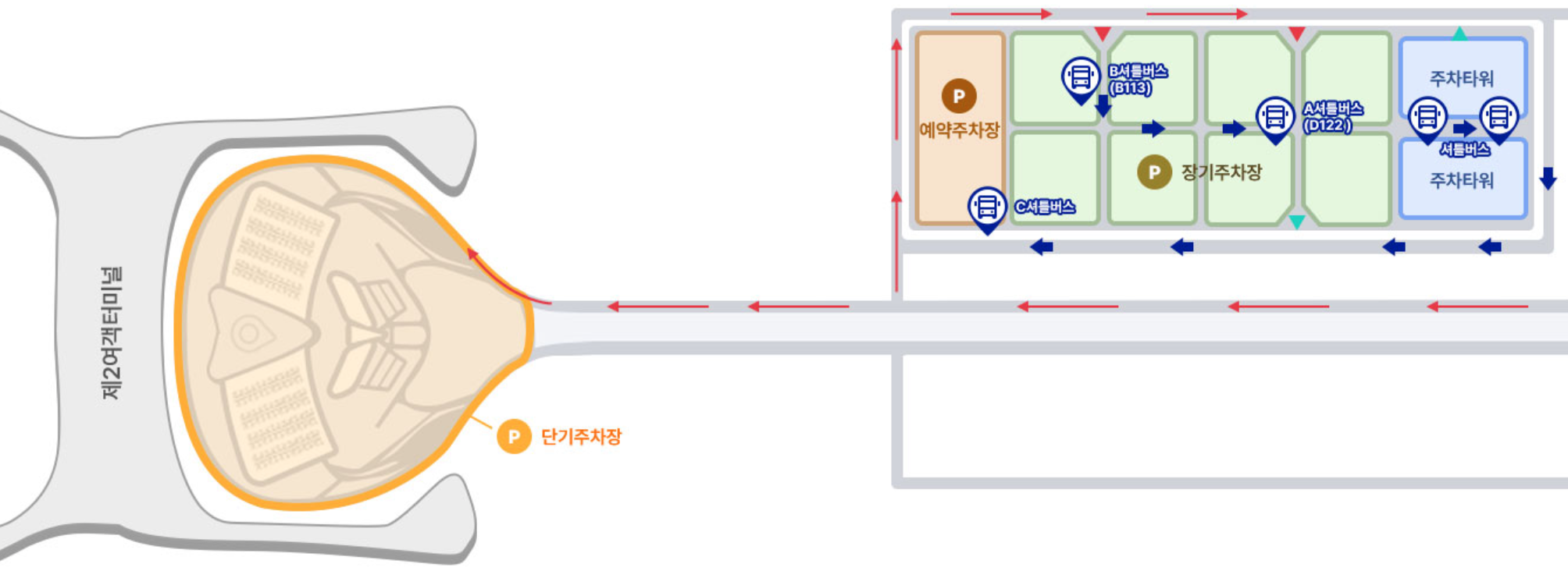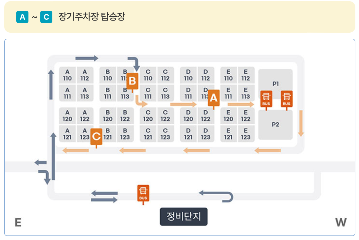 - 탑승 장소: 장기주차장 A/B/C 지점마다 셔틀 정류장 위치
