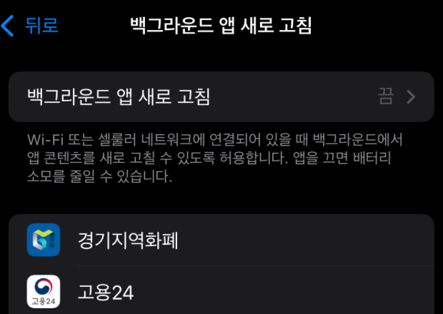 - 설정 > 일반 > 백그라운드 앱 새로 고침