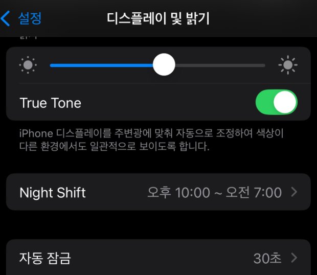 - 설정 > 디스플레이 및 밝기 > 자동 잠금 > 30초
