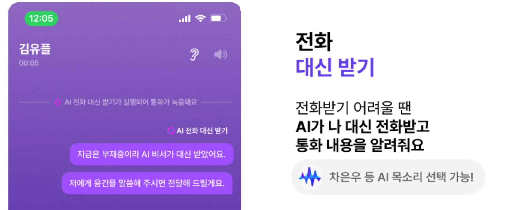 - AI 자동응답: 바쁜 상황에서 유용하게 사용 가능 (목소리도 사용자 설정 가능)
