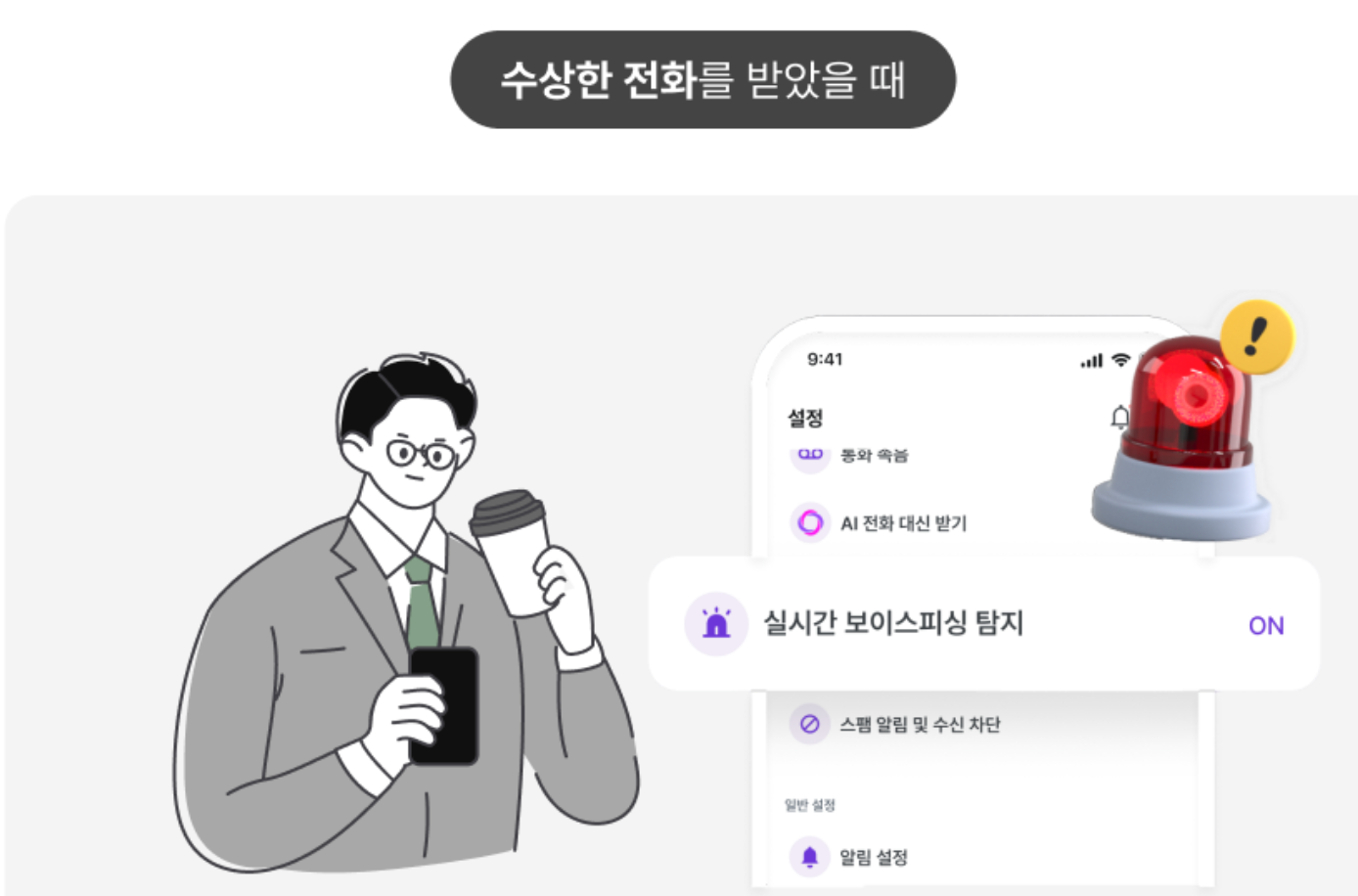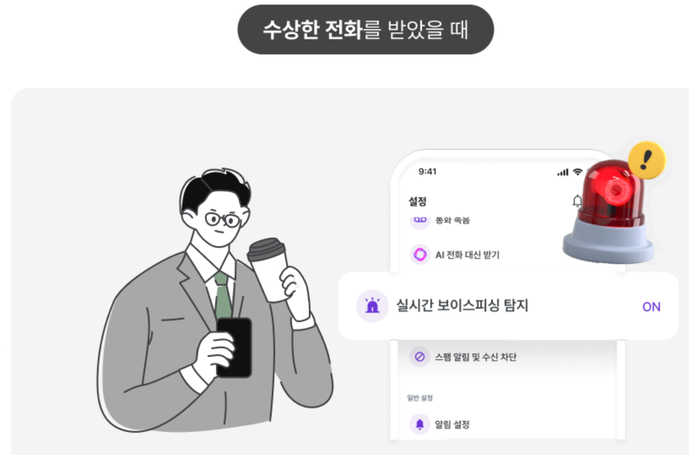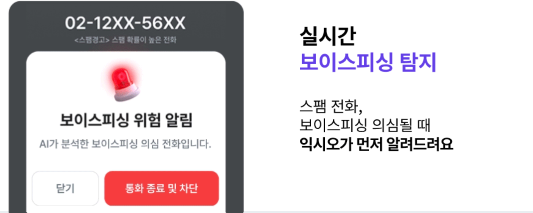| 보이스피싱 탐지 | AI가 보이스피싱 의심 통화를 실시간으로 탐지 및 경고 |