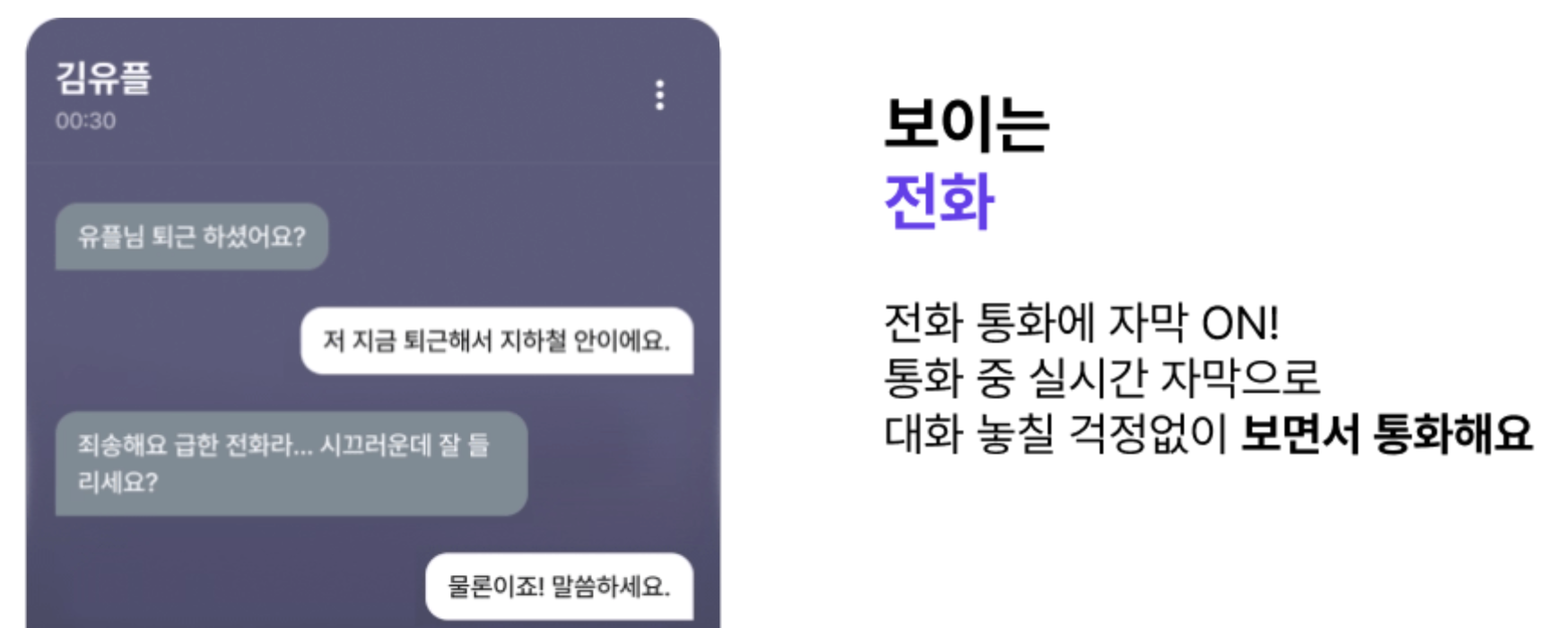 | 보이는 전화 (실시간 자막) | 통화 중 음성을 자막으로 표시 |