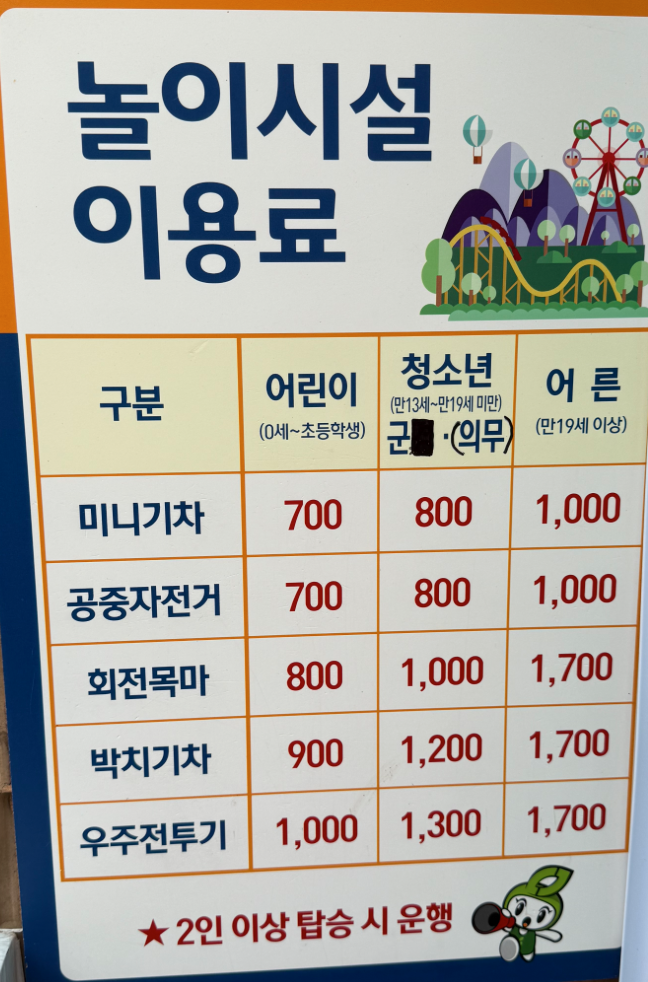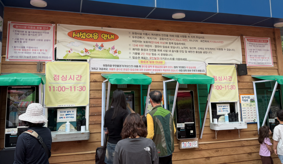 - 놀이기구: 특이하게 점심시간이 있습니다. (11:30 ~12:00)