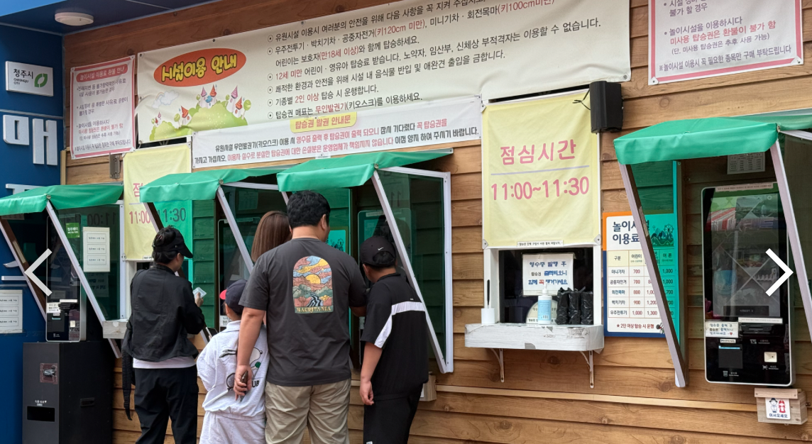 - 주차장 위치: 청주랜드 입구 앞, 넓고 차량 회전이 쉬움