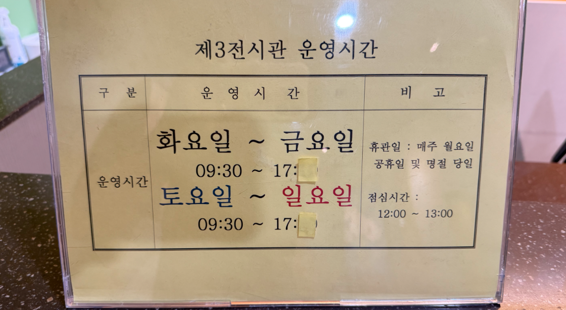 - 휴무일: 매주 월요일 (공휴일 제외)