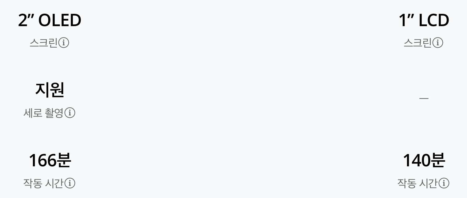 | 1인치 대형 센서로 뛰어난 화질 | 가격대가 다소 높음 |
