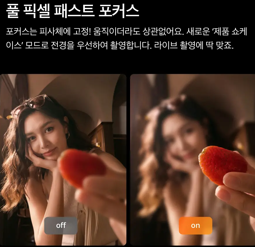 | 자동 프레이밍 & 트래킹 | 실시간 스트리밍 기능은 제한적 |