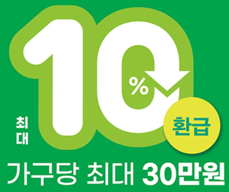 에너지효율 1등급 제품을 구매하면 구매 금액의 10%, 최대 30만원까지 환급을 받을 수 있어 가전 교체 계획이 있다면 지금이 절호의 기회예요!