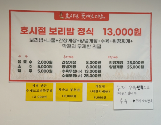 운전하지 않으신 분들이라면 막걸리와 보리밥의 조합을 놓치지 마세요.