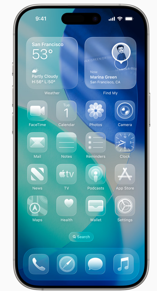 - Liquid Glass 디자인이 배경에 따라 가독성 저하 가능.