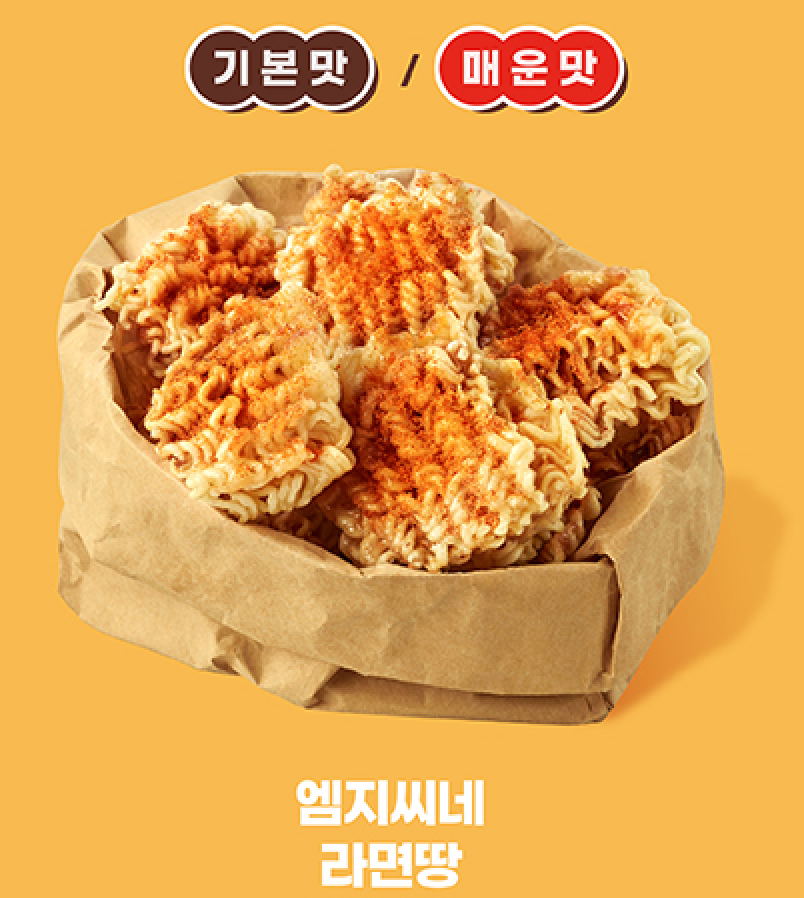 라면땅은 간단한 스낵류로, 음료 주문 시 함께 곁들이기 좋은 사이드 메뉴로 출시되었습니다.
